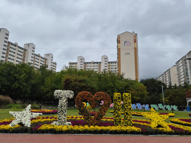 이번 국화전시는 옥곡동 생활 환경 숲과 맨발 걷기 산책로 인근 시정 구호 화단 약 800㎡에 3,300여 본의 국화와 곰돌이, 고양이, ‘아이러브유’ 조형물 3점을 설치해 다채로운 볼거리를 제공한다.