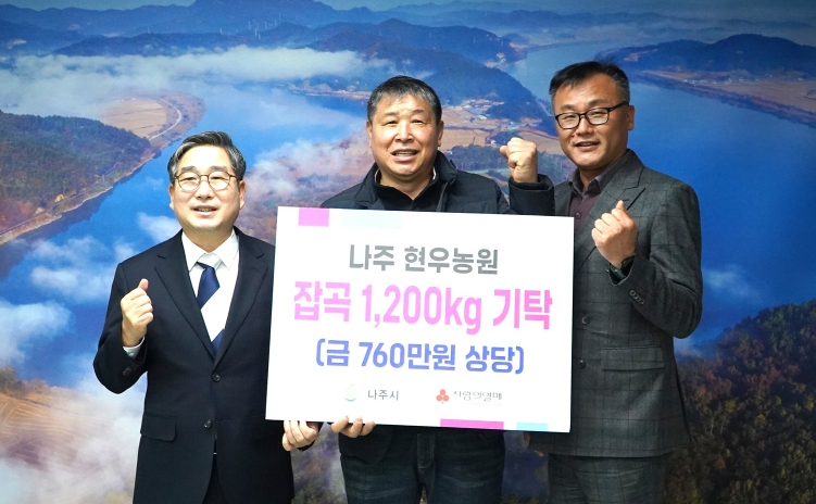 [무한뉴스=정민정 기자] 전남 나주시는 현우농원이 16일 관내 취약계층 지원을 위해 백미(10kg)와 찰수수(1kg), 찰기장(1kg) 각 100포씩(760만 원 상당)을 기탁했다고 밝혔다.