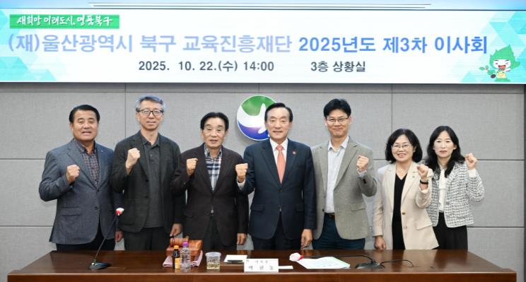 [무한뉴스=최진수 기자] 울산 북구교육진흥재단은 22일 북구청 상황실에서 제3차 이사회를 열고, 내년도 사업계획 및 예산(안)과 차오름 장학금 지원사업(안) 등을 심의·의결했다.