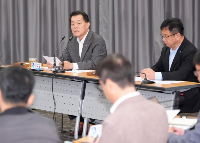 | ▲ 이재준 수원시장이 29일 시청 중회의실에서 열린 10월 확대간부회의에서 발언하고 있다. |