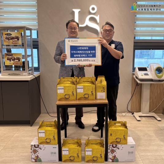 [무한뉴스=정승훈 기자] 남양주시는 21일 LS한방병원이 쌍화탕 20박스(약 216만 원 상당)를 서부희망케어센터에 기탁했다고 밝혔다.