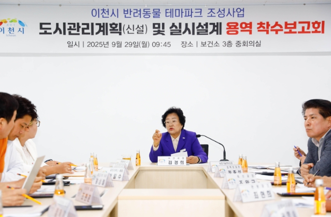[무한뉴스=정충근 기자] 이천시가 반려동물, 반려인과 비반려인이 함께 어울릴 수 있는 복합문화공간인 ‘반려동물 테마파크’ 조성을 본격 추진한다고 밝혔다. 시는 최근 율면 월포리 일원에 대한 설계 용역에 착수했으며, 9월 29일 착수보고회를 통하여 사업의 방향과 세부 내용을 발표하고 각계각층의 의견을 수렴했다.