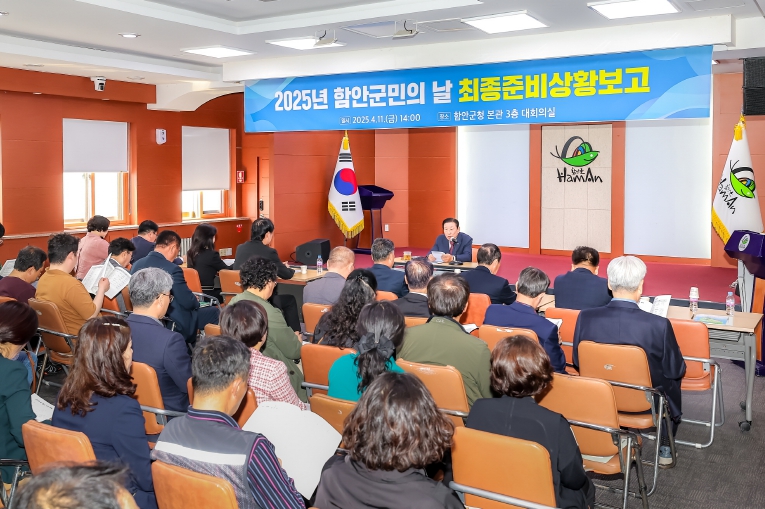 [무한뉴스=최진수 기자] 함안군민의 화합 대축제인 2025년 함안군민의 날 행사가 이달 25일부터 27일까지 3일간 함안공설운동장과 함주공원 일원에서 열리는 가운데 행사의 성공적인 개최를 위한 ‘2025년 함안군민의 날 최종 준비상황 보고회’가 11일 오후 2시 군청 3층 대회의실에서 개최됐다.