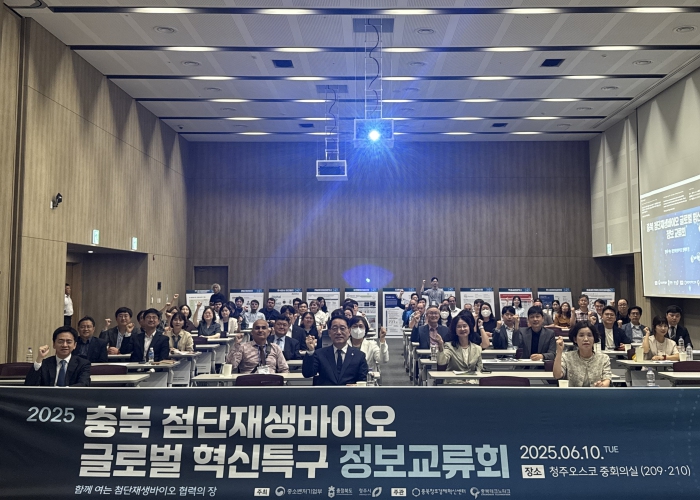 [무한뉴스=정민정 기자] 충북도는 10일 청주오스코에서 ‘충북 첨단재생바이오 글로벌 혁신특구 관계자 정보교류회’를 개최했다고 밝혔다. 이번 행사는 중기부와 충청북도, 청주시, 특구 참여 관계자 등 70여 명이 한자리에 모여 특구의 추진 성과를 공유하고 향후 발전 방향을 논의하며, 실질적인 협력 체계를 모색하기 위해 마련됐다.