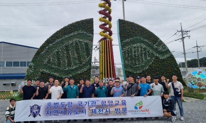 시는 2025제천국제한방천연물산업엑스포 행사장을 방문한 홍범도함 승조원들을 맞아 환영식을 열었다.