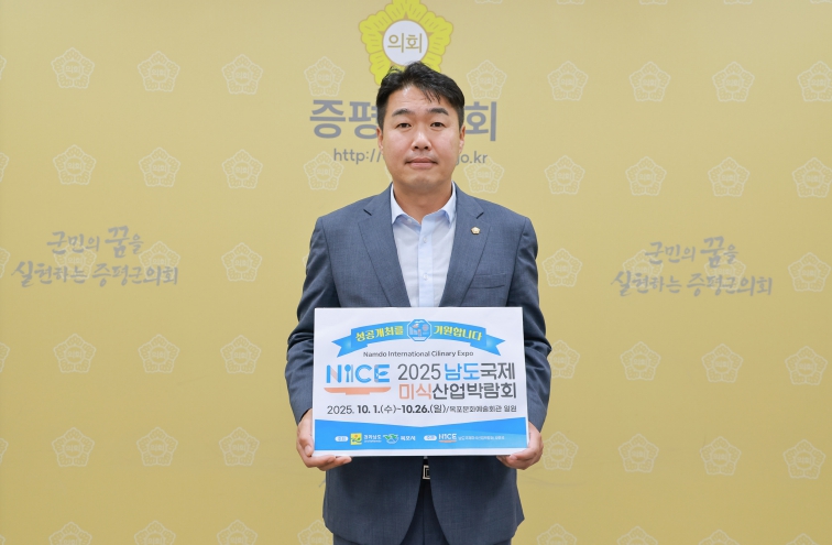 | ▲ 증평군의회 조윤성 의장, '2025 남도국제미식산업박람회' 성공 기원 릴레이 응원 동참 |