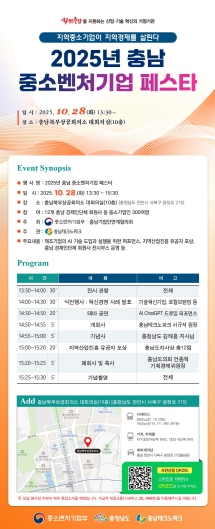 ▲ 충남테크노파크, ‘2025 충남 중소벤처기업 페스타’ 28일 개최