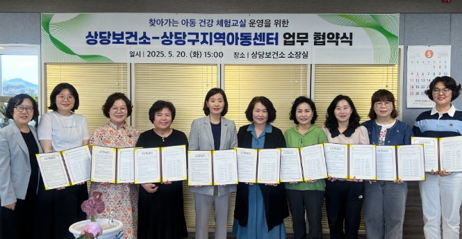 상당보건소에서 진행된 협약식에는 보건소와 경희지역아동센터, 방서지역아동센터, 방주지역아동센터, 쌀안지역아동센터, 청주우리지역아동센터, 파랑새지역아동센터, 행복한지역아동센터, 희망지역아동센터 등 8개 지역아동센터가 참여했다.