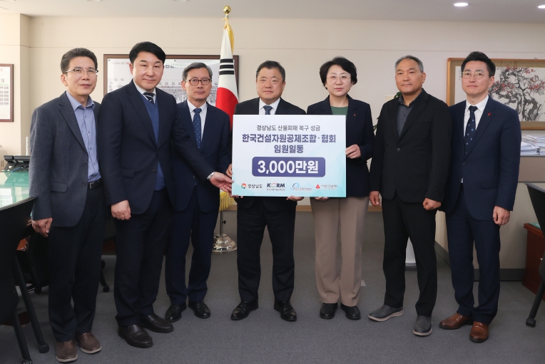 [무한뉴스=최진수 기자] 경상남도는 24일 오후 2시 30분 경남도청에서 한국건설자원공제조합이 경남지역 산불 피해 주민들을 돕기 위해 3,000만 원의 성금을 기탁했다고 밝혔다.