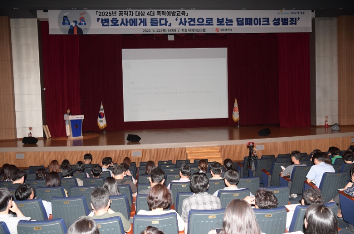 [무한뉴스=정민정 기자] 광주광역시는 22일 시청 대회의실에서 시청 공직자들을 대상으로 ‘2025년 4대 폭력 예방교육’을 실시했다.