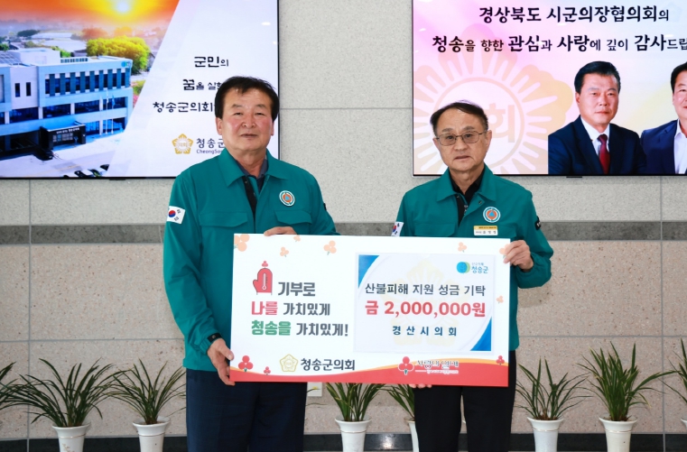 4월 24일 청송군의회를 직접 방문해 100만 원의 성금을 전달했으며,시·군의회의장협의회를 통해 전달한 성금 100만 원은 피해 지역에 추가로 기탁했다.