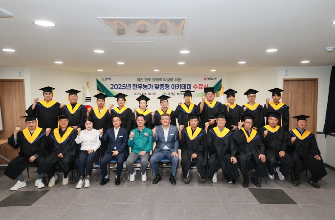 [무한뉴스=최진수 기자] 예천군은 30일 오후 4시, 단샘어울림센터 회의실에서 한우농가 30명이 참석한 가운데 2025년 ‘예천한우 맞춤형 아카데미 수료식’을 개최했다. 이번 수료식에는 김학동 군수도 함께해 수료자들을 격려했다.