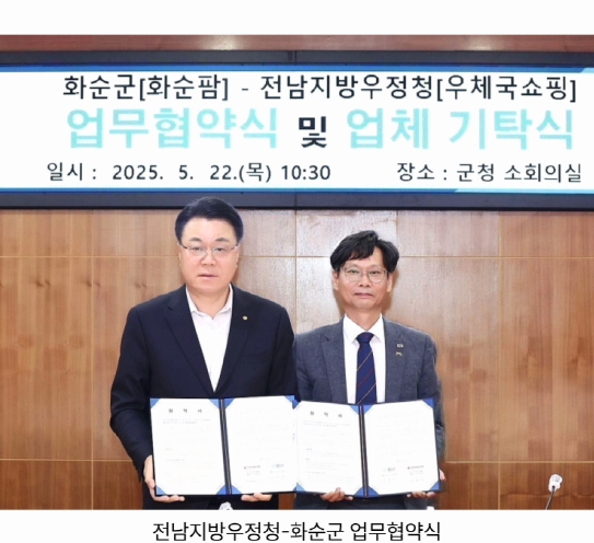 [무한뉴스=정민정 기자] 전남지방우정청은 지난 22일 화순군청에서 화순군과 업무협약을 체결하고, 기부 행사도 함께 진행했다고 밝혔다. 이번 행사는 지역 농수축산물의 온라인 판로 확대와 더불어 취약계층을 지원하는 뜻깊은 자리였다.