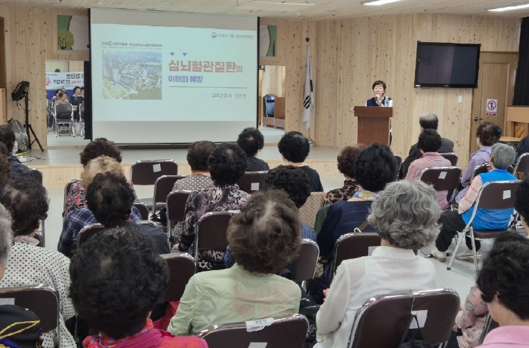 [무한뉴스=최진수 기자] 부산 서구가 지난 16일 서구 부민노인복지관에서 지역 주민 70여 명이 참석한 가운데‘고혈압, 당뇨병 등 심뇌혈관질환 및 노인천식 예방 관리 방법’을 주제로 건강 강좌를 개최했다.