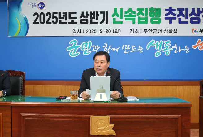 [무한뉴스=정민정 기자] 전남 무안군은 20일 군청 상황실에서 2025년 상반기 신속집행 추진상황 보고회를 개최했다.