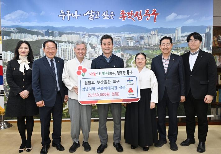 김영길 중구청장은 “산불 이재민들의 아픔에 공감하며 의미 있는 나눔을 실천해 주셔서 감사드린다”며 “따뜻한 마음을 담아 도움이 필요한 분들에게 성금을 잘 전달하겠다”고 밝혔다.