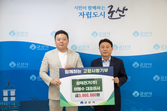 [무한뉴스=정민정 기자] 군산시는 삼덕전기(주) 이병수 대표이사가 고향사랑기부금 300만 원을 기탁했다고 밝혔다.