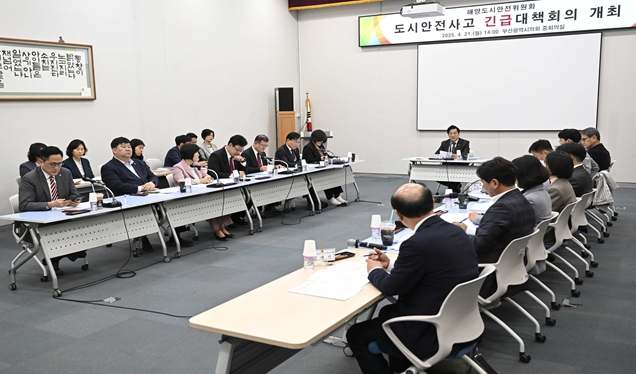 [무한뉴스=최진수 기자] 부산광역시의회 해양도시안전위원회는 4월 21일 오후 2시 시의회 2층 중회의실에서 최근 연이어 발생한 도시안전사고에 대응하고, 안전한 도시 환경 조성을 위한 긴급 대책회의를 개최했다.