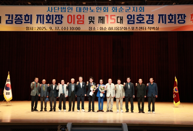 [무한뉴스=정민정 기자] (사)대한노인회 화순군지회(지회장 임호경)는 17일 오전 10시 화순 하니움문화스포츠센터에서 초청 내외빈과 회원 500여 명이 참석한 가운데, 제14대 김종희 지회장 이임식과 제15대 임호경 지회장 취임식을 개최했다.