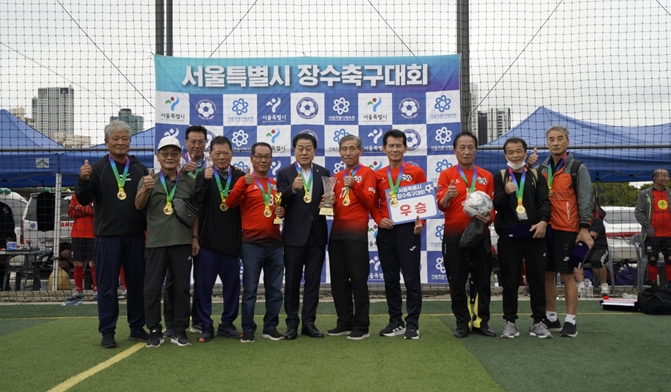 [무한뉴스=양현명 기자] 서울특별시의회 도시안전건설위원회 부위원장으로 의정활동하고 있는 김용호 시의원(국민의힘, 용산1)은 지난 10월 11일과 12일, 성동구 살곶이체육공원과 응봉축구장, 중랑물재생센터 축구장에서 열린 ‘서울시 7080 장수축구대회’에 참석하여 개회식에서는 축하 인사를 전하고, 폐막식에서는 70대B조 우승팀에게 직접 트로피와 우승컵을 수여했다.