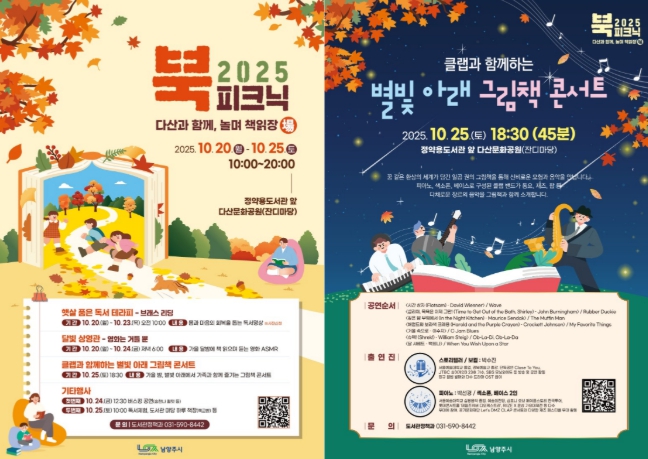 [무한뉴스=정승훈 기자] 남양주시는 10월 20일부터 25일까지 6일간 정약용도서관 앞 다산문화공원 잔디마당에서 ‘2025 북피크닉: 다산과 함께, 놀며 책읽장(場)’을 운영한다.