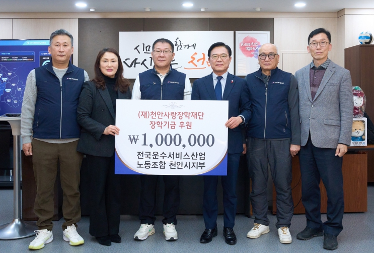 전국운수노조 천안시지부는 이날 천안시청에서 열린 전달식에서 장학기금 100만 원을 (재)천안사랑장학재단에 전달했다.