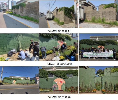 ‘다모이길’은 행정안전부 공공서비스디자인 사업의 일환으로 만들어졌다. ‘주민이 다 모이길 바라는 공간’이라는 뜻을 담아 주민 소통 거점 공간인 ‘다모임 텃밭’과 이를 연결하는 골목길 ‘다모이길’을 조성했다.