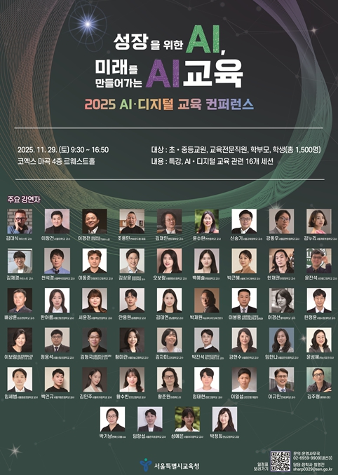 [무한뉴스=정승훈 기자] 서울특별시교육청(교육감 정근식)은 AI 시대 학습자의 성장을 체계적으로 지원하고, 공교육이 나아가야 할 미래교육의 방향을 모색하기 위해 '2025 AI·디지털 교육 컨퍼런스'를 11월 29일 마곡 코엑스에서 개최한다.