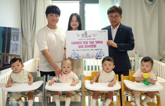 [무한뉴스=정민정 기자] 대전 대덕구는 21일 2024년 9월 건강한 네쌍둥이를 출산한 정재룡·가미소 부부가 자녀들의 첫돌을 맞아 특별한 나눔을 실천했다고 밝혔다.