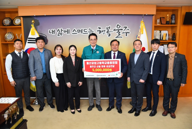 이순걸 군수는 “산불로 피해를 입은 주민들을 돕기 위해 온정을 전해주신 울산공업고등학교 총동창회에 감사드린다”며 “따뜻한 마음을 담아 도움의 손길이 필요한 곳에 성금을 잘 전달하겠다”고 말했다.