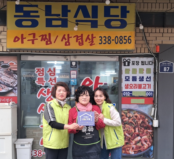 ▲ 부산 북구 구포1동, 동남식당에 나눔가게 현판 전달 |