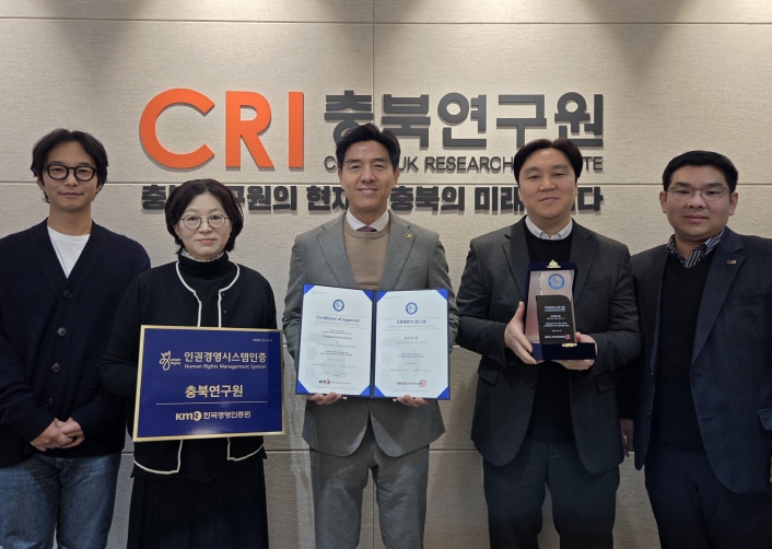 [무한뉴스=정민정 기자] 충북연구원(원장 김영배, 이하 연구원)은 최근 공공기관의 인권 존중 경영 실천을 강화하기 위해 추진한 인권경영시스템 인증을 공식 획득했다.