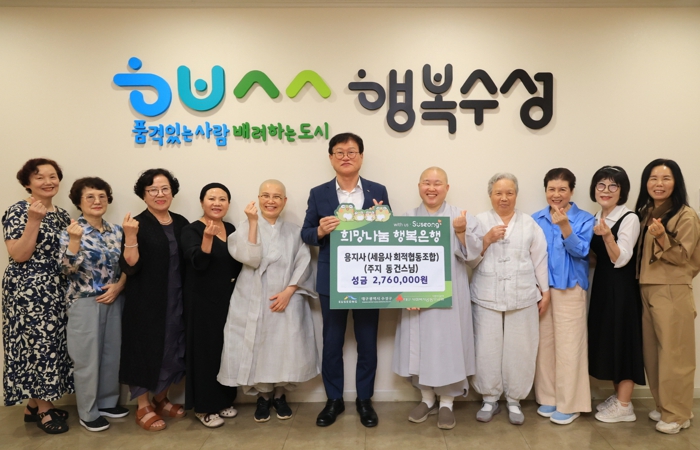 [무한뉴스=최진수 기자] 대구 수성구는 지난 19일 용지사(세음사회적협동조합) 주지 동건스님과 신도들이 재난 피해 주민들을 위해 써달라며 성금 276만 원을 전달했다고 밝혔다.
