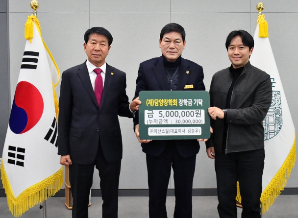 [무한뉴스=정민정 기자] (재)담양장학회는 지난 26일 ㈜이산스틸(대표이사 김승우)에서 5백만 원을, ㈜고서삼화자원(대표 이형수)에서 2백만 원을 기탁했다고 밝혔다.