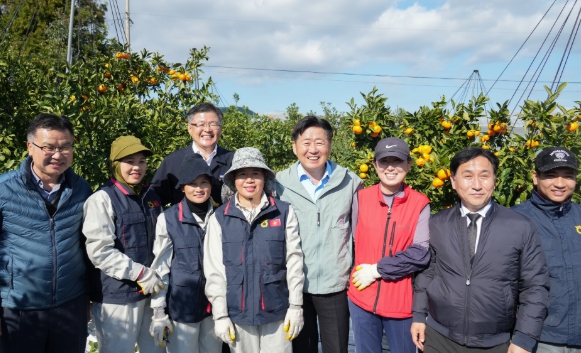 오 지사는 이날 서귀포농협 공공형 계절근로자와 함께 감귤 수확 작업에 참여하며 농가 애로사항을 청취했다.