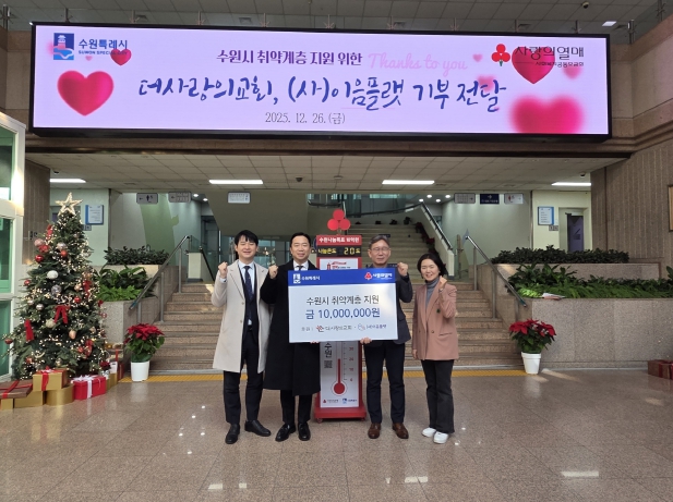 [무한뉴스=양현명 기자] 더사랑의교회가 설립한 사회복지법인 ‘이음플랫’이 “취약계층 지원을 위해 사용해달라”며 26일 1000만 원을 수원시에 기부했다. 기부금은 사회복지공동모금회에 지정기탁 방식으로 수원시 취약계층 지원에 사용할 예정이다.