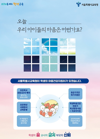 [무한뉴스=정승훈 기자] 서울특별시교육청은 모든 학생의 정서적 안정을 실현하겠다는 교육청의 정책 방향과 실행 약속을 알리기 위해 ‘학생 마음건강(생명존중) 증진 캠페인’을 본격 추진한다.