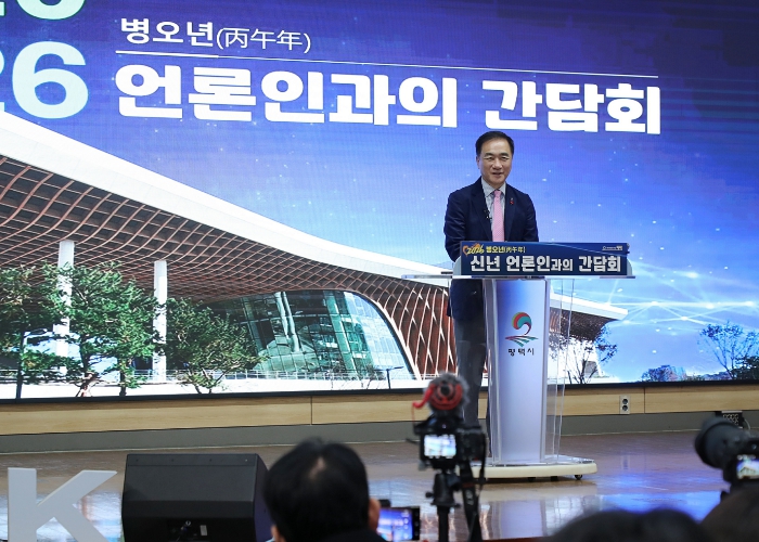 [무한뉴스=정승훈 기자] 평택시가 2026년 병오년을 맞아 신년 언론인 간담회를 19일 열어 새해 주요 시정 방향을 밝혔다. 이번 간담회에는 100여 명의 언론인과 정장선 평택시장을 비롯한 간부 공무원이 참석했으며, 주요성과 발표, 2026년 주요 시책 설명, 질의응답 순으로 진행됐다.