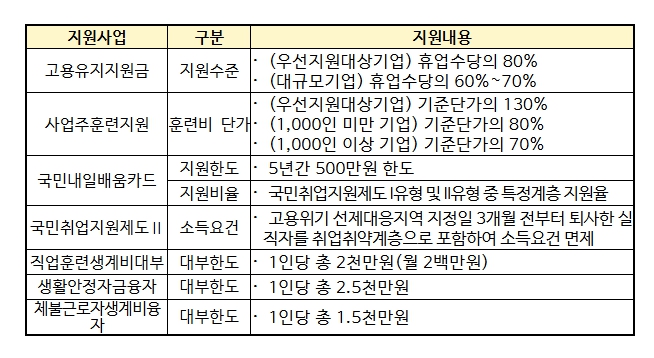 | ▲ 고용위기 선제대응지역 지원 내용 |