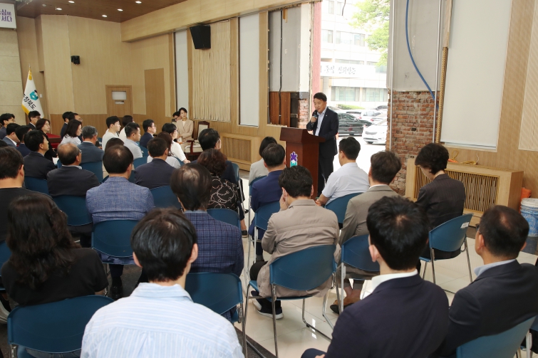 이날 대회의실에서 열린 6월 직원조회에서는 지난해 신년 화두였던 ‘틈, 창, 문, 길’이라는 메시지를 다시 전하며 “틈을 벌려 희망의 창을 내고 변화와 개혁을 통해 미래로 나아가는 문을 열어야 할 때”라고 강조했다.