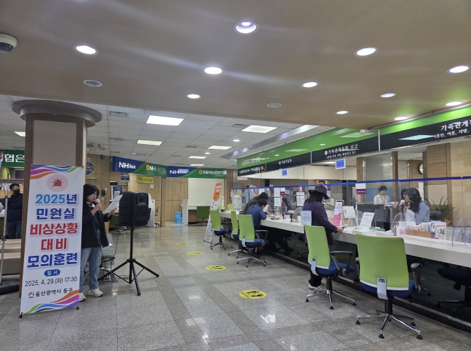 [무한뉴스=최진수 기자] 울산 동구는 4월 29일 민원실의 안전한 근무 환경 조성을 위한 ‘2025년 상반기 민원실 비상 상황 대비 모의훈련’을 실시했다.