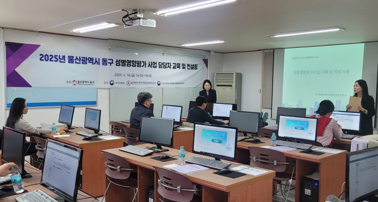 [무한뉴스=최진수 기자] 울산 동구는 4월 18일 오후 2시 정보화교육장에서 2025년 성별 영향 평가 대상 사업 담당자 10명을 대상으로 이론 강의와 실습 교육을 했다.