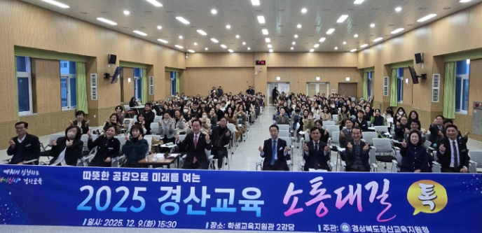 [무한뉴스=최진수 기자] 경상북도경산교육지원청은 12월 9일 경산교육지원청 학생교육지원관 2강당에서 경산시장 및 도의회 의원, 관내 유․초․중․고등학교 교(원)장, 학교운영위원장, 학부모회장, 녹색어머니회, 학생상담자원봉사자, 주민감사관 및 공약이행단 대표, 교육계 원로 등 경산 교육가족 220여 명을 초청하여 ‘교육감과 함께하는 2025 경산교육 소통대길 톡’을 개최했다.