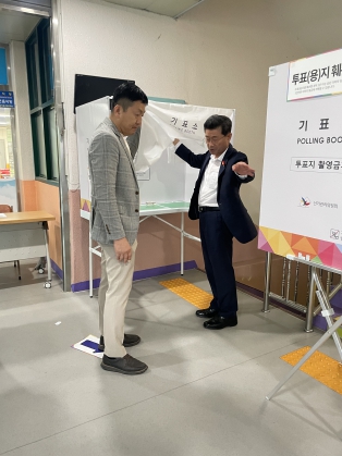 정인화 시장은 덕진봄플러스아파트 내 설치된 광양읍 제10투표소와 용강초등학교에 설치된 제13투표소를 방문해 투표 이동 동선, 기표대 및 투표함 설치 상태, 장애인 투표 편의 장비 구비 등 투표소 설비 상황을 살펴보고, 불법 카메라 설치 여부 등 투표소 준비 전반을 꼼꼼하게 점검했다.