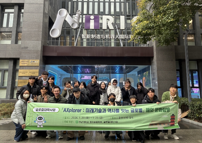 [무한뉴스=정민정 기자] 전남대학교 창의융합학부(학부장 이인혜)는 ‘글로컬대학사업’의 일환으로 지난 1월 20일부터 23일까지 3박 4일간, 중국 상해와 항주 일대에서 무전공 학생들을 위한 글로벌 진로 탐방 프로그램 'AXplorer: 미래기술과 역사를 잇는 글로벌 탐방'을 성황리에 마쳤다.