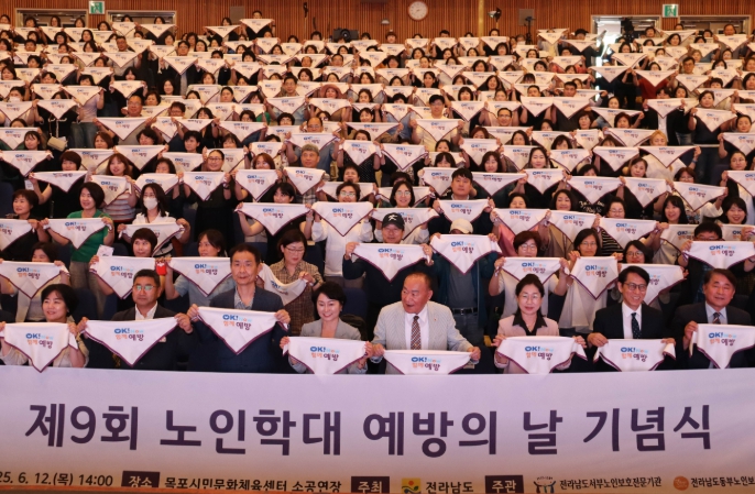 [무한뉴스=정민정 기자] 전라남도는 12일 목포시민문화체육센터서 노인 학대에 대한 사회적 관심을 높이고 노인 인권을 보호하기 위한 ‘제9회 노인학대 예방의 날’ 기념식을 개최했다.