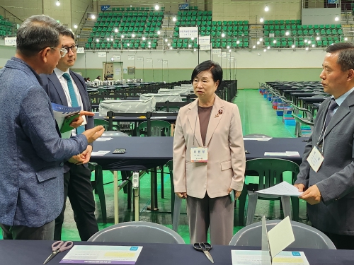 [무한뉴스=정승훈 기자] 인천광역시선거관리위원회 김귀옥 위원장은 6월 2일 선학체육관에 설치된 연수구 개표소를 직접 방문하여 제21대 대통령선거 개표소 설비 및 운영 준비 상황을 점검했다.