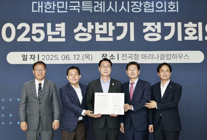 [무한뉴스=정승훈 기자] 화성특례시가 12일 전곡항 마리나클럽하우스에서 열린 ‘대한민국특례시시장협의회 2025년 상반기 정기회의’에서 정명근 화성특례시장이 신임 대표회장으로 선출됐다고 밝혔다. 임기는 2026년 6월 30일까지다.