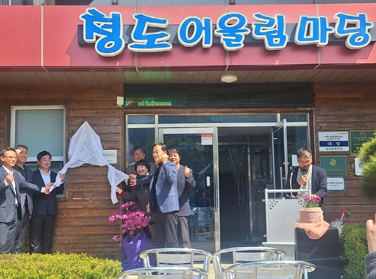 ▲ 16일 밀양숲속마을 청도어울림마당에서 진행된 으뜸촌 현판식 |
