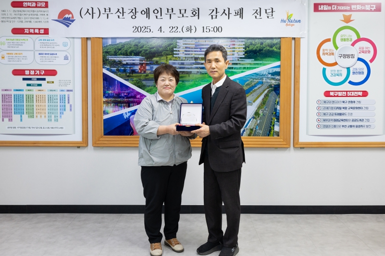 ▲ 부산 북구, (사)부산장애인부모회 감사패 전달 |